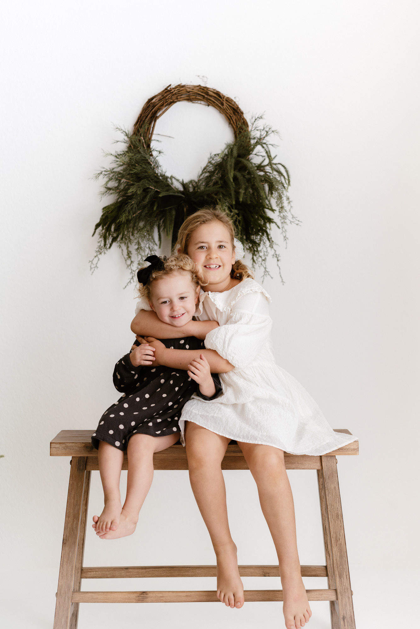 As a timeless, minimalist photographer, I couldn't connect with the idea of creating a “faux home” setup with staged fireplaces or beds that aren’t really yours. Instead, I’ve chosen to embrace the studio for what it is: clean, simple, and honest. I add just a touch of festive detail, while keeping the true focus where it belongs - on you and your children as the heart of your Christmas photos.