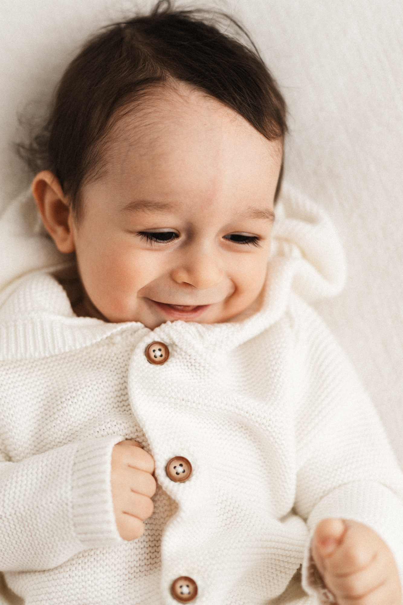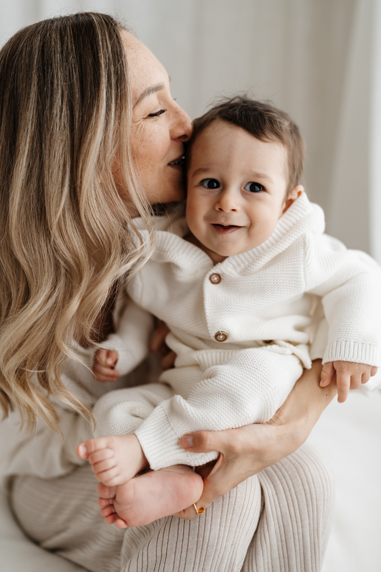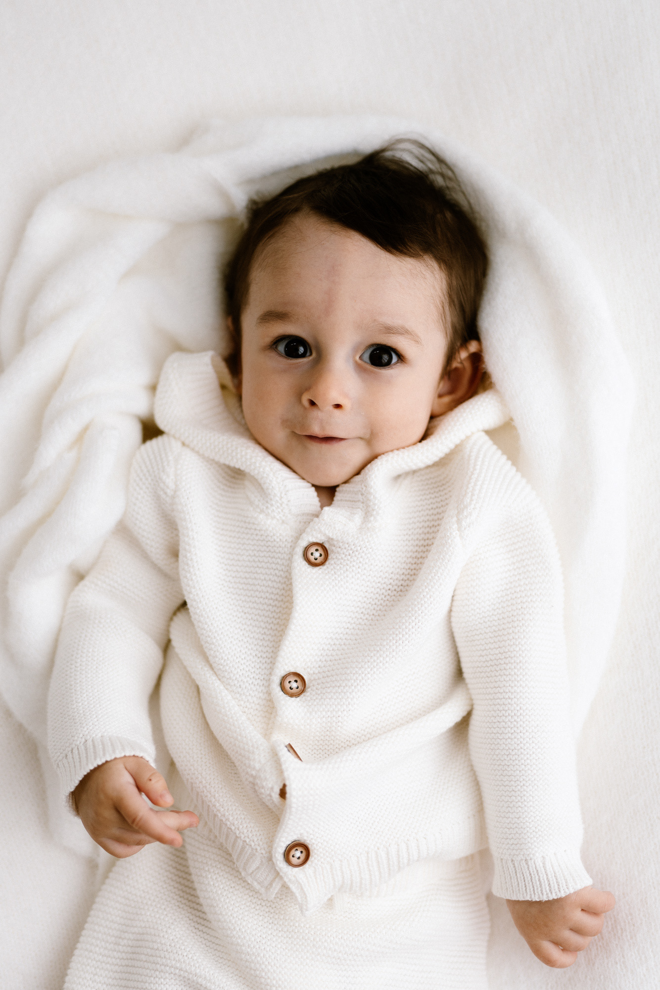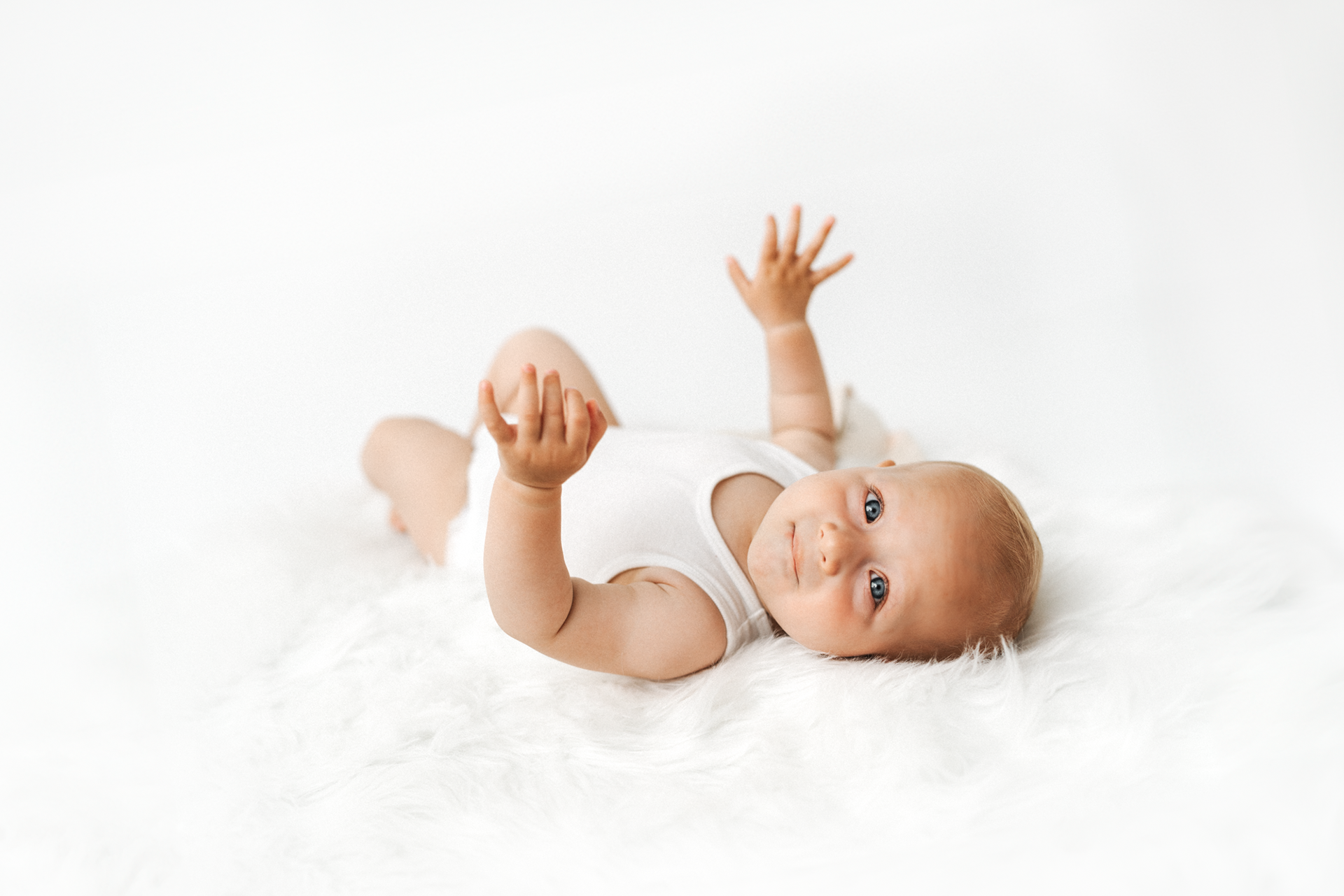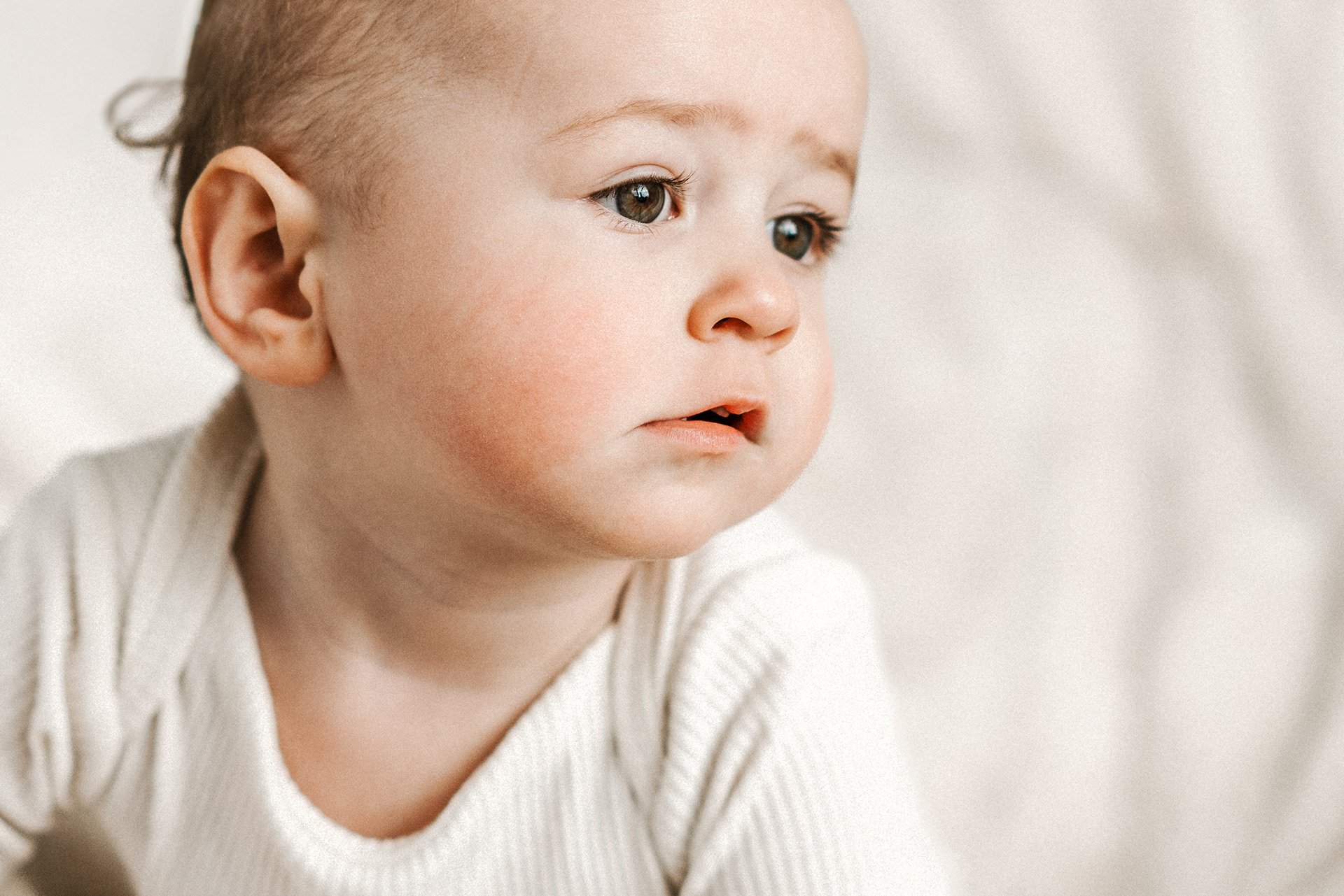 If you’ve already done newborn photos, some especially lovely milestones to consider are around 3–4 months, when babies are more alert, making eye contact and starting to show those first smiles, and around 8–9 months, when they can typically sit up unassisted and their personalities really begin to shine.