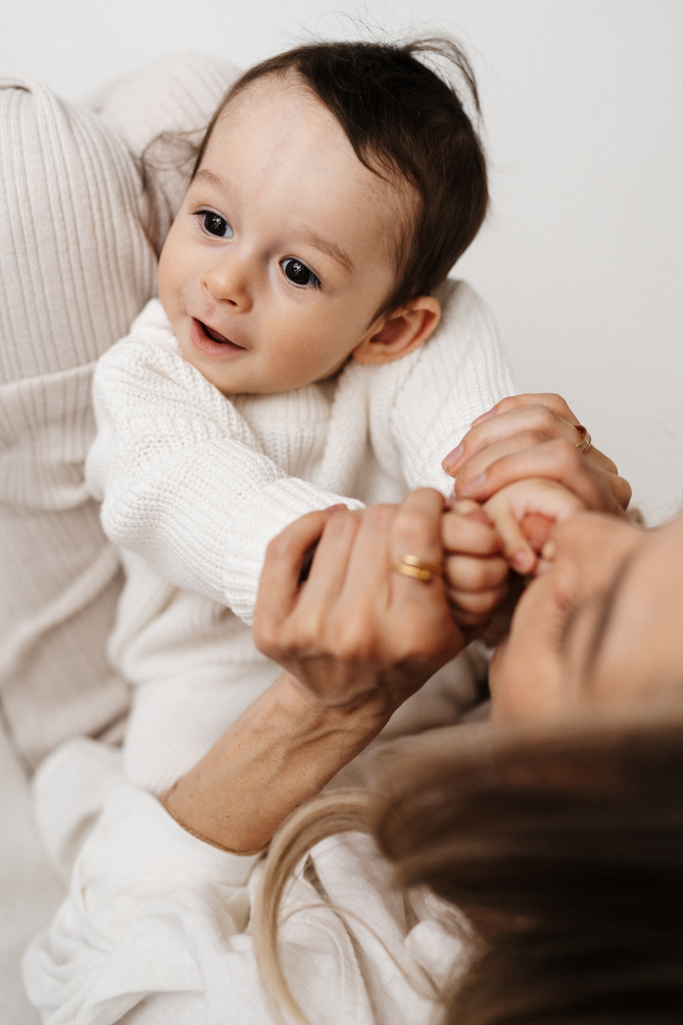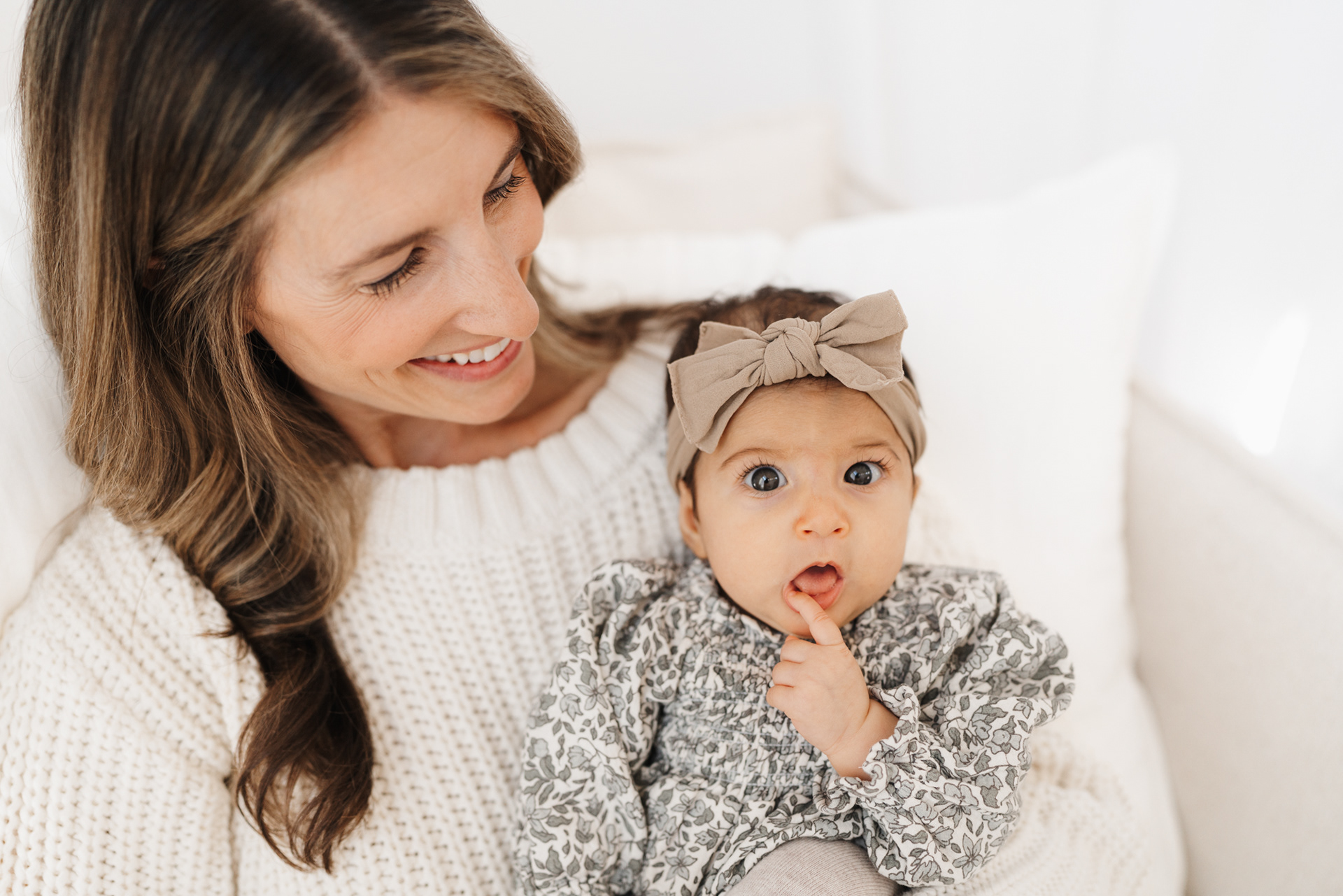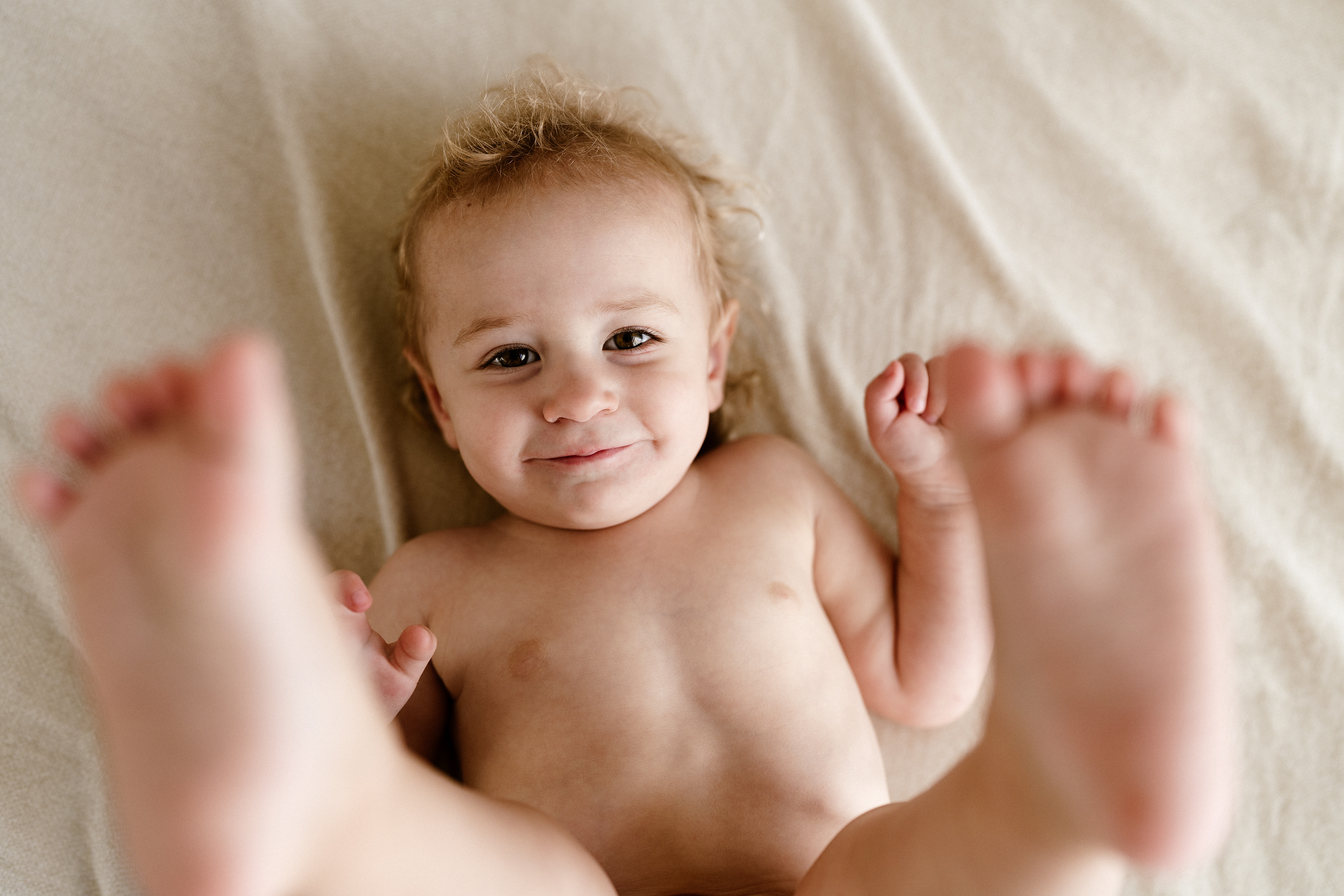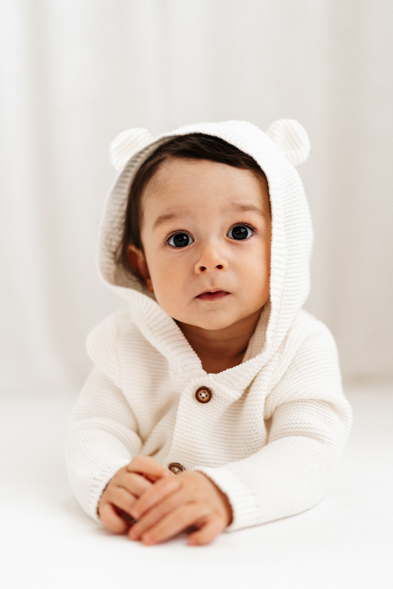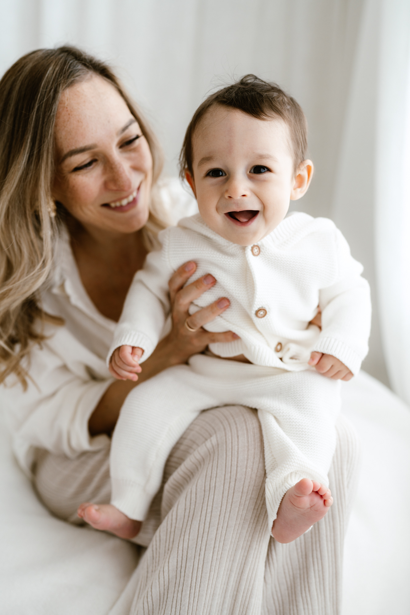 If you’ve already done newborn photos, some especially lovely milestones to consider are around 3–4 months, when babies are more alert, making eye contact and starting to show those first smiles, and around 8–9 months, when they can typically sit up unassisted and their personalities really begin to shine.